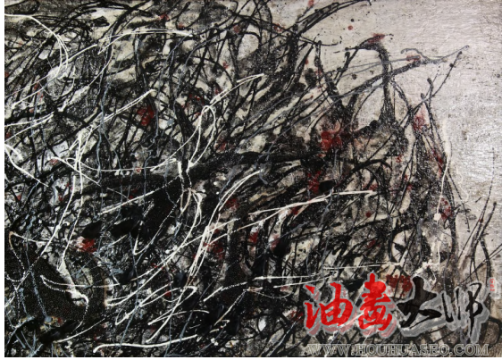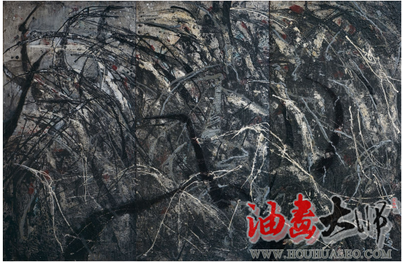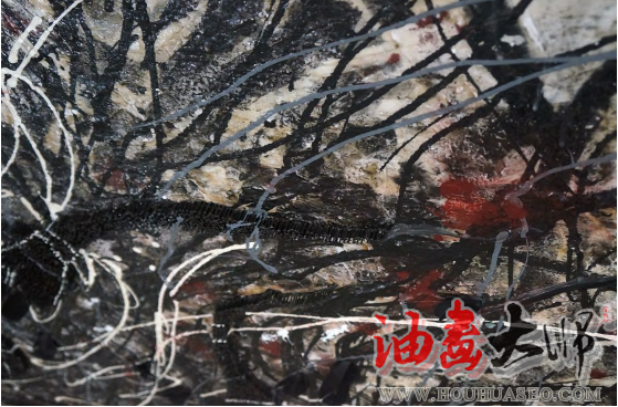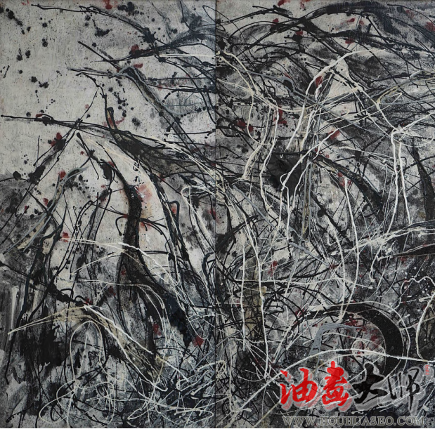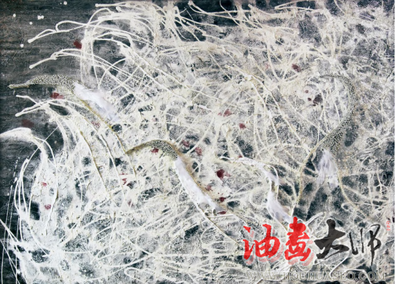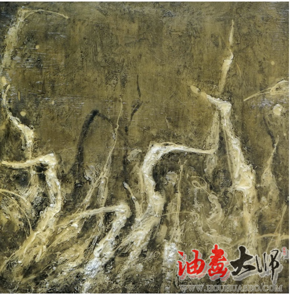 冯放画里的意象性的东西都是鹤,他是善于使用材料的艺术家,特别善于对综合材料的把握。他用综合材料画出来的带有大写意的作品相当有震撼力。由于材料的支撑、材料的应用,他的作品很有力度。他的作品近看材料斑斑驳驳,有厚重感,材料与材料之间的对比关系形成了一种张力,既适合近看,也适合远观。我很肯定冯放的创作思路。