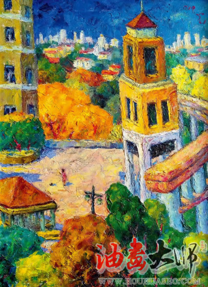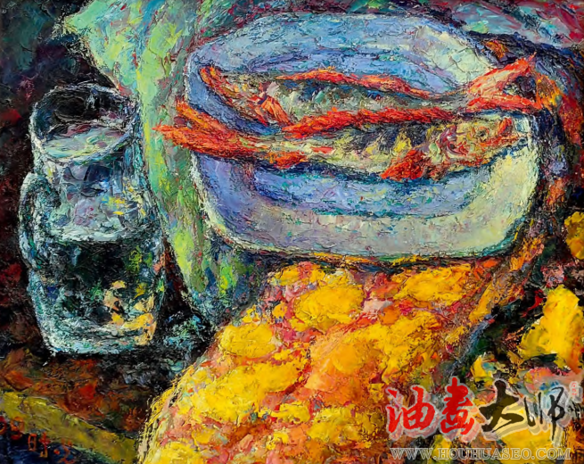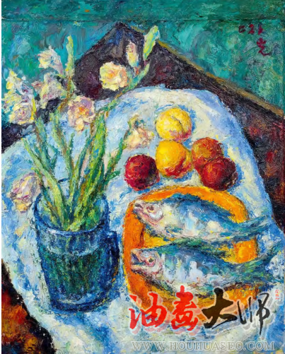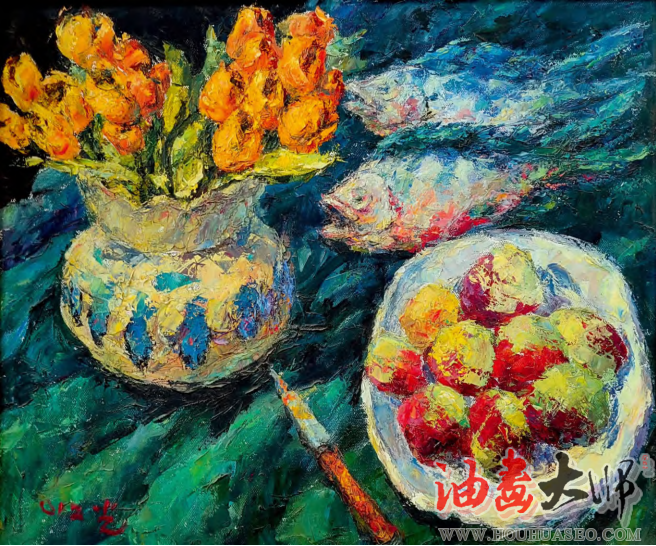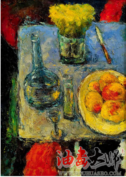 郭先生画花卉静物,画风景,也画人物,唯独不画照片。因为照片与天真无缘。今天画照片者,也是不知天真为何物,或鄙视天真为粪土。郭先生钻研的是西洋传统油画艺术,有19世纪印象派的血脉,与莫奈、毕沙罗、维亚尔、凡·高相比,似乎他们都像是干画法,郭先生的颜料堆积像是湿画法,与博纳尔、凡东根、马蒂斯相比,他们天马行空,像是中国的诗人李白,而郭先生倒像是诗人杜甫一样,用钝斧斫骨,一点一点地斫出那连血带肉的心灵来。