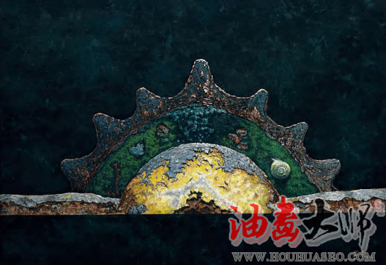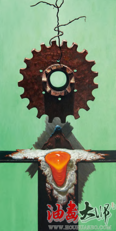 齿轮是物理中力的产生和运用的经典器物。齿轮是人类工业革命的象征,是人类社会发展的伴随者。齿轮时时刻刻见证我们的过去、今天和未来的生存状态,它是人类工业文明革命的活化石。画家要赋予它有意义、有情感、有美和生命的标志符号。