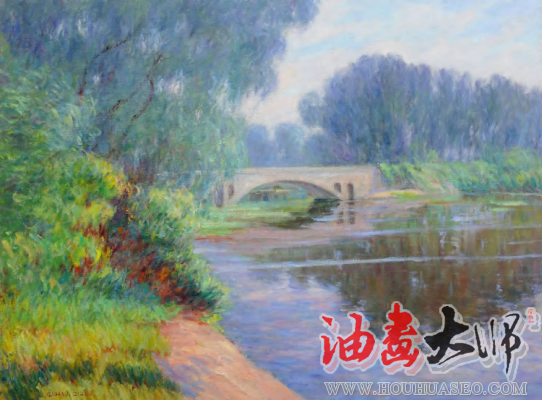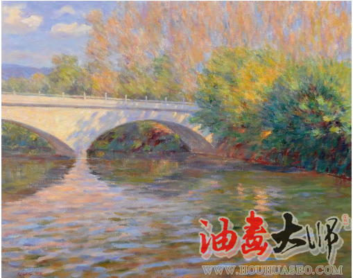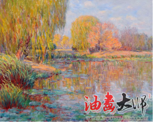 面对创作主题,通常我需要每天在同一时间、相同的位置、同样的光线和同样的天气,花费很长的时间进行细微观察、捕捉,来描绘绚丽美妙而又变化莫测、转瞬即逝的阳光,以微妙的冷暖色彩与交错的笔触传达出自己对自然界的感动,把大自然的空气和转瞬即逝的阳光带给了世人,将心灵深处的那份宁静与生命的朝气播撒在能带给观众美妙感觉的图画中。我认为绘画最终应该是纯视觉倾向的,应该让观众用眼睛来体验绘画的美,用眼睛直接来享受纯粹的视觉愉悦,让观众有一种身临其境之感,并引起共鸣,进而得到心灵上的升华。或许,这就是纯绘画艺术的魅力之所在吧。