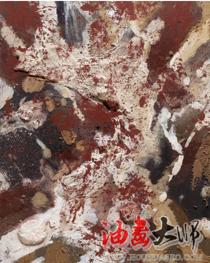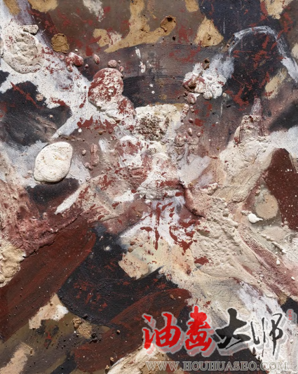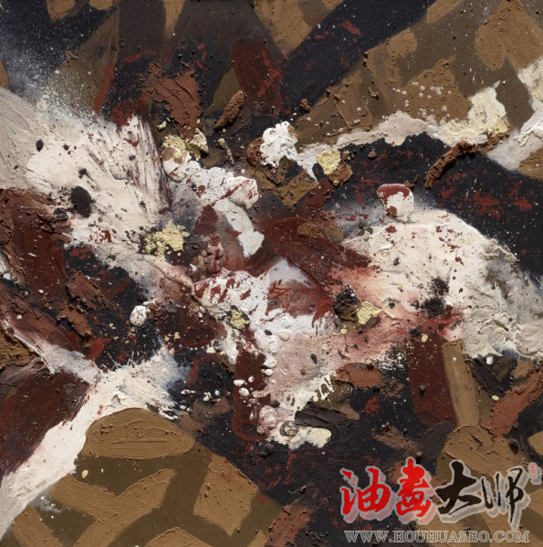 当观众惊奇于作品的宏大气象而不知其解时,均会不由自主地趋前观察作品的局部构成,从笔墨、肌理、材料到色彩构成,体悟艺术有形构造或物质呈现的奥秘,而无形之观念则在局部构成的张力中喷涌而出,无形之象在艺术家与观众的想象共振中成型。